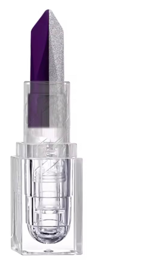 “Rule the night with Royal Starlight. This bold purple and dazzling silver duo glides on like velvet, leaving your lips with a radiant, star-kissed shine. Perfect for turning every glance into pure admiration.”